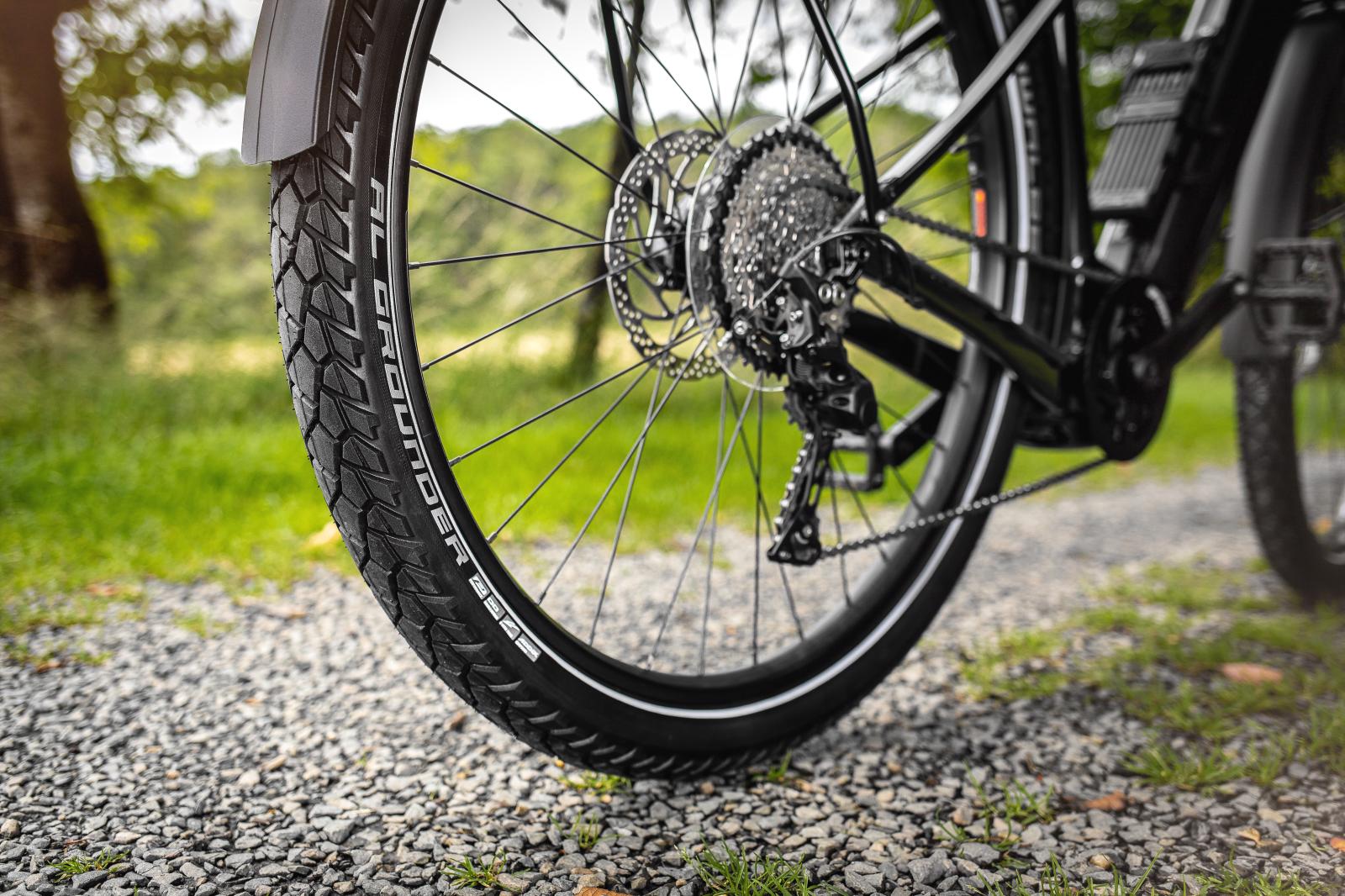 Mit seinen breitflächigen Profilblöcken rollt er leichtfüssig auf Straßen und Feldwegen ab und beweist die nötige Traktion im leichten Gelände
