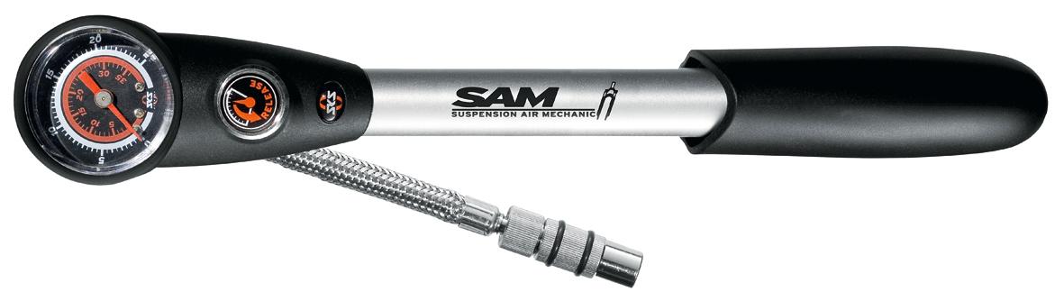 Die Dämpferpumpe SAM (steht für Suspension Air Mechanic) ist durch das Design einer Minipumpe voll tourentauglich. Ein Druckreduzierventil ermöglicht präzises Einstellen des gewünschten Luftdrucks.